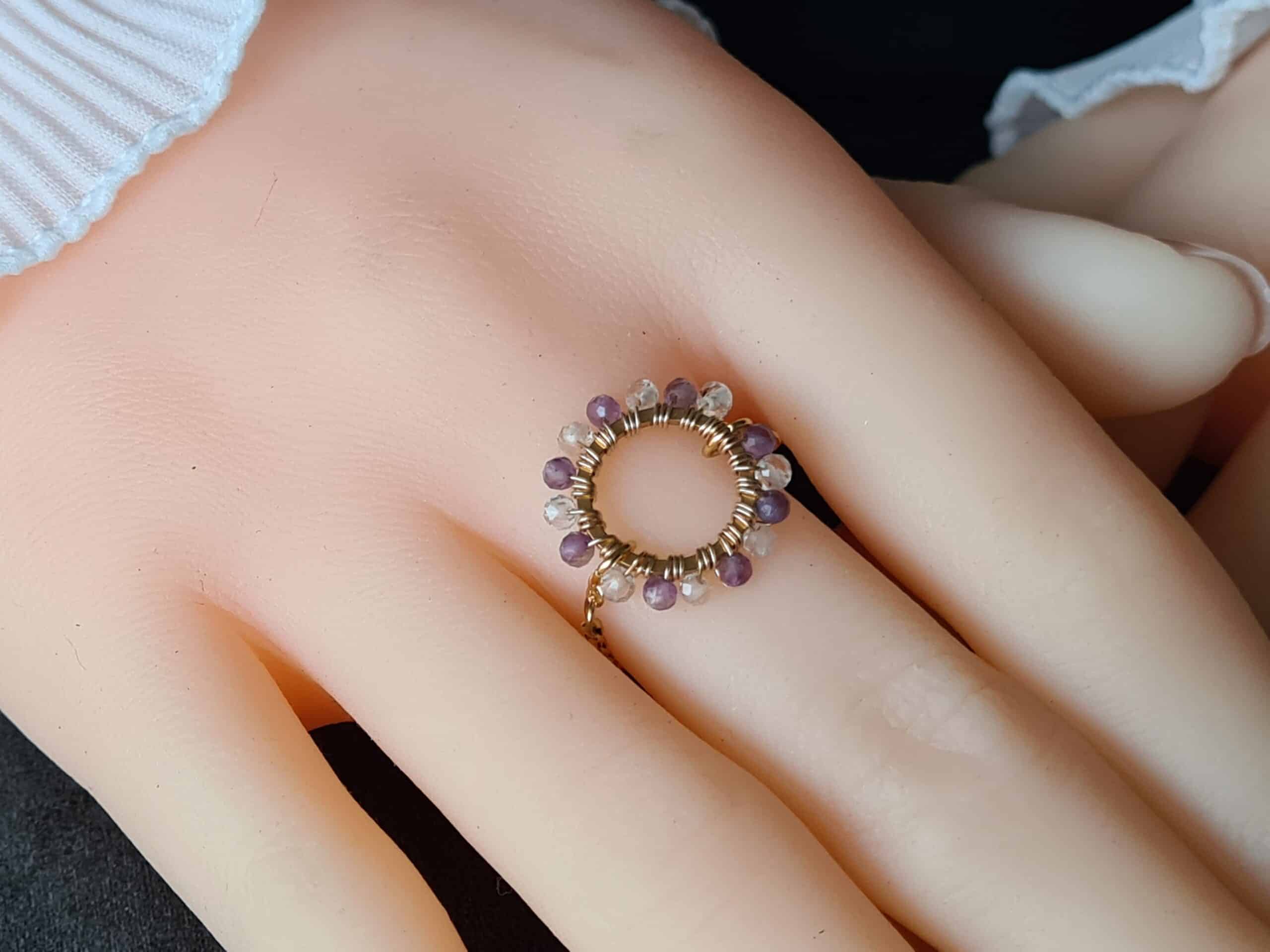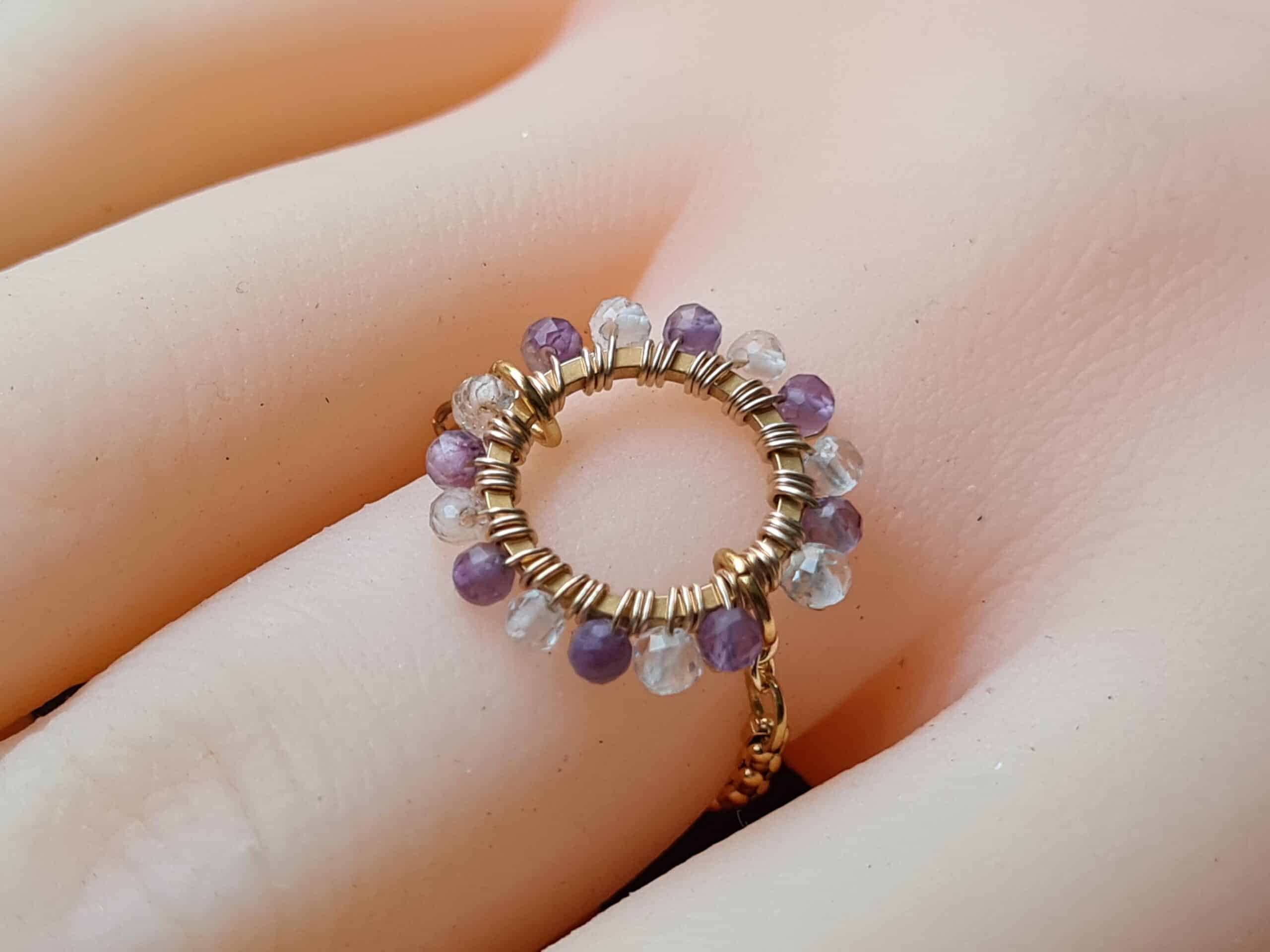 Bague ajustable « Ronde de Gemmes » Améthyste et Cristal de roche