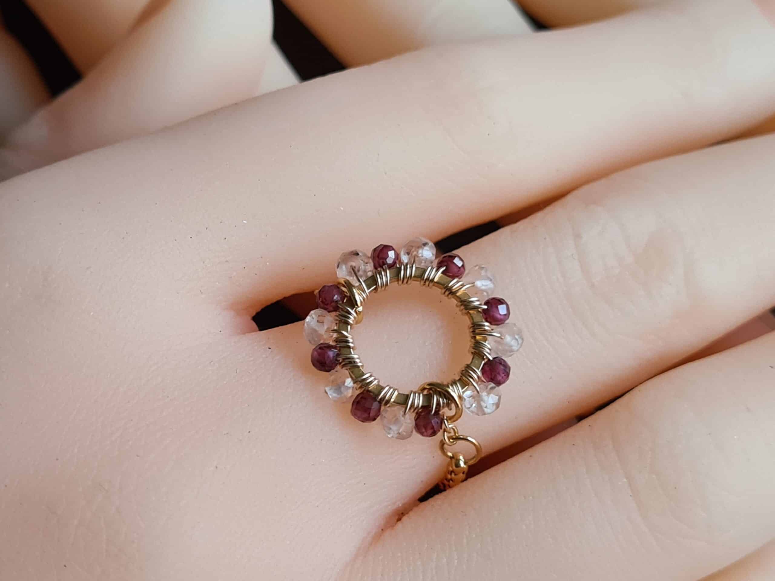 Bague ajustable « Ronde de Gemmes » Grenat et Quartz Rose